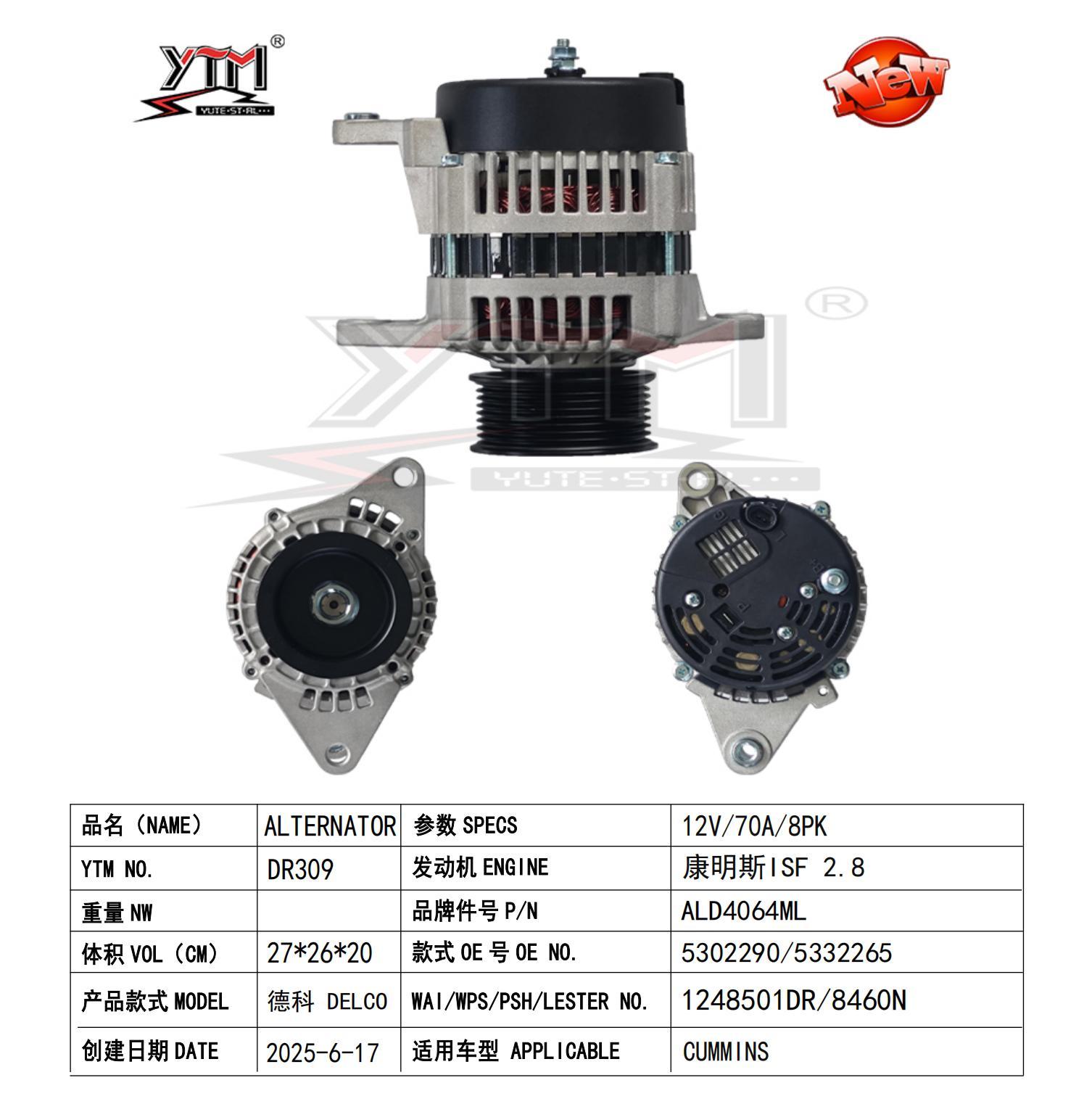Premium υψηλής ποιότητας 12v 70a 8pk Εναλλάκτης Για Cummins Isf 2.8 ONAN 5302290 5332265