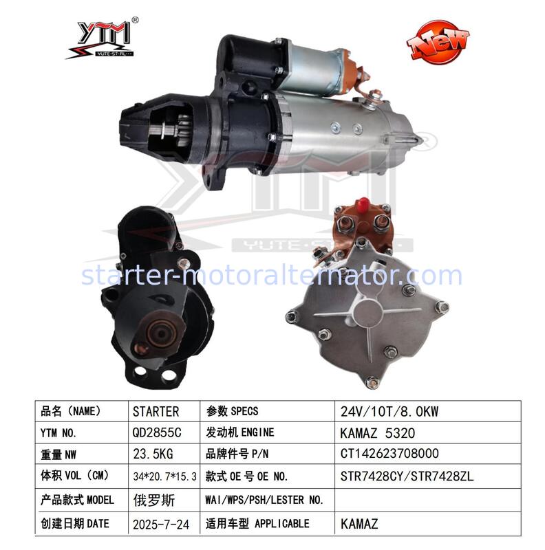| Ονομασία του προϊόντος | 24V 10T 8.0KW Ρωσικός κινητήρας εκκίνησης για KAMAZ 5320 53212 5410 5511 55102 Μηχανή CT142623708000 STR7428CY STR7428ZL |
