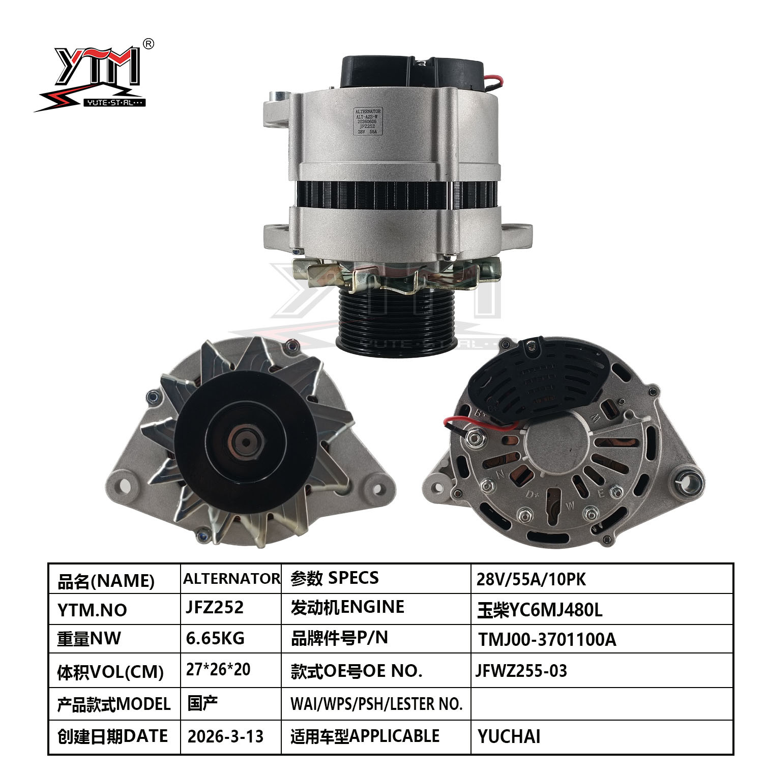 | Επισημαίνω: | YUCHAI car alternator 28V 55A,JFWZ255-03 engine alternator,YC6MJ480L electric alternator motor |